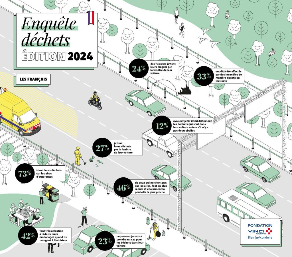 Unfortunately, the reflex of throwing rubbish out of the window is still alive and well, despite the increase in sorting equipment available to motorists: ‘ more than 1 in 10 French people (12%) admit to disposing of rubbish immediately in their car, without waiting for a rubbish bin, even though there are rubbish bins at 100% of motorway service areas, i.e. every 10 minutes or so of the journey ’, points out the Vinci Autoroutes Foundation.